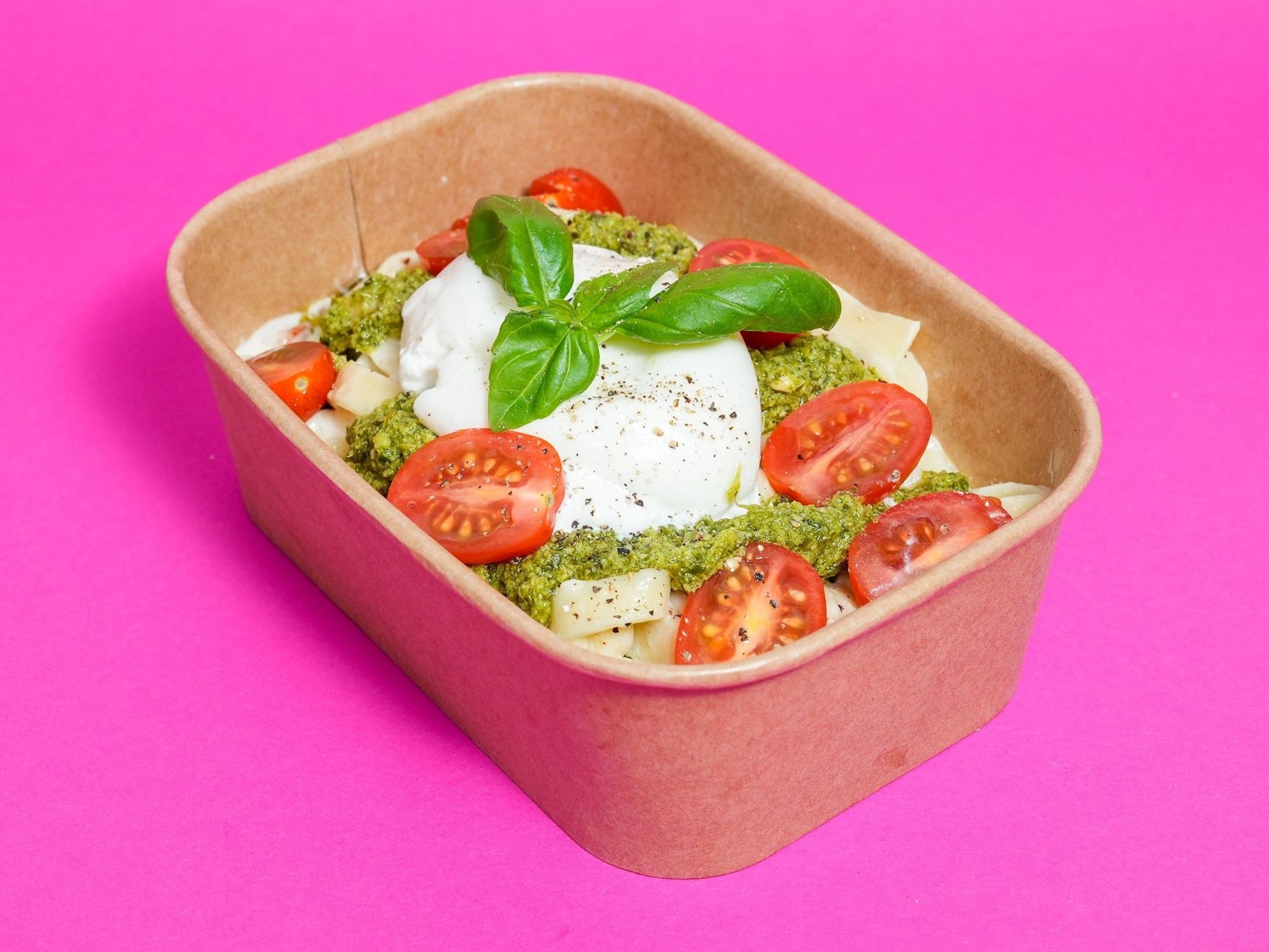 masło, grana padano, śmietana 30%, pesto bazyliowe, burrata, pomidorki koktajlowe, czosnek