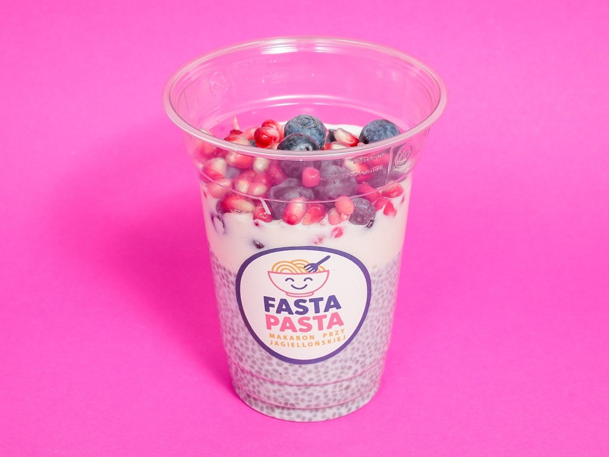 mleko, nasiona chia, serek waniliowy, owoce